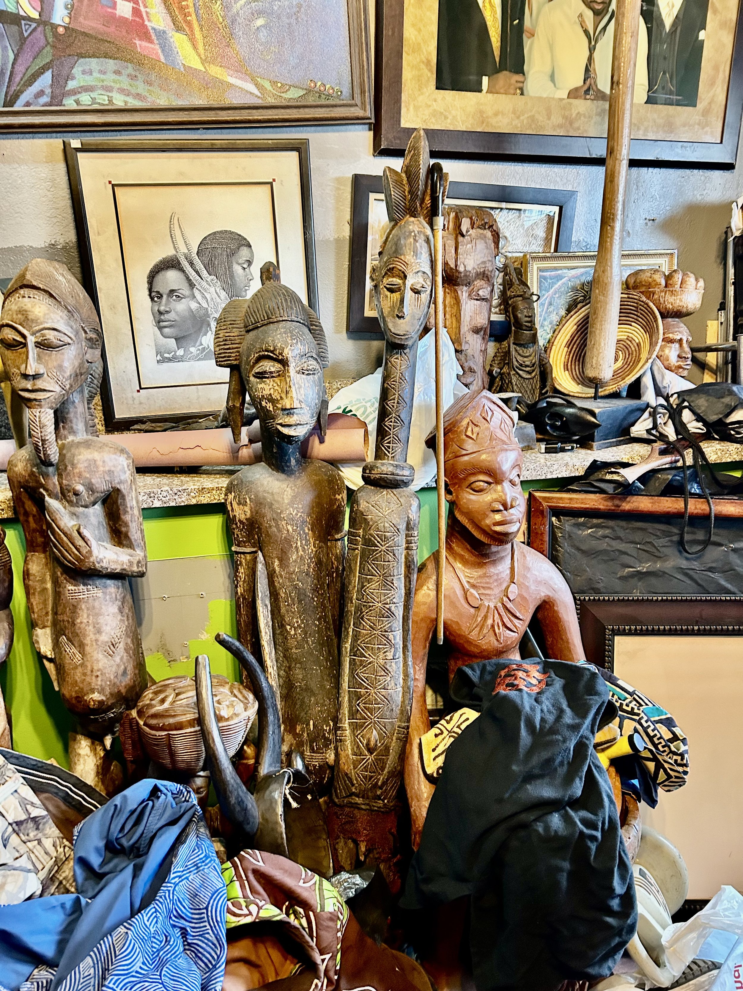 AFRICAN DIASPORA TREASURES: ART, WOOD MASKS & SCULPTURES, CLOTHING, AND MORE